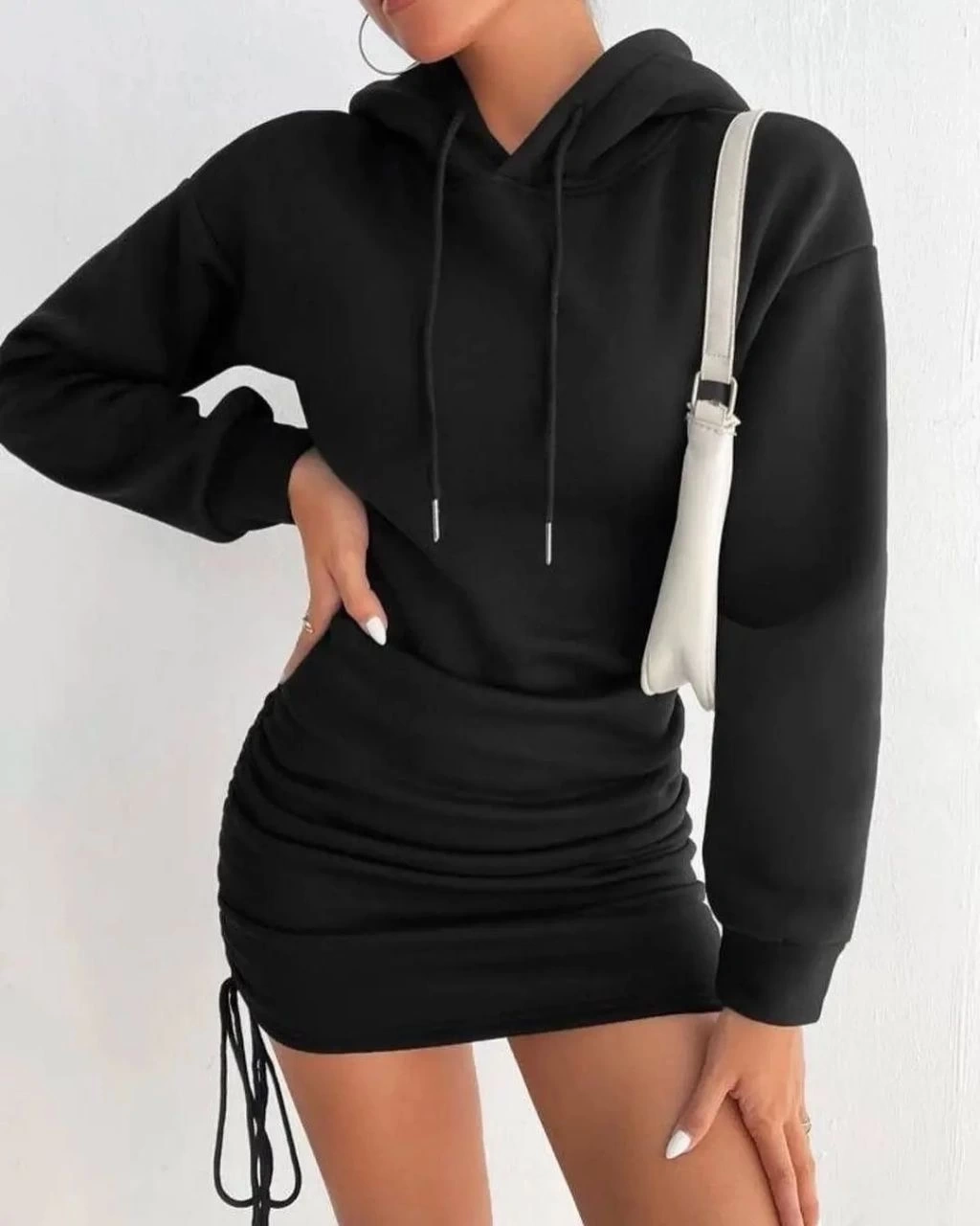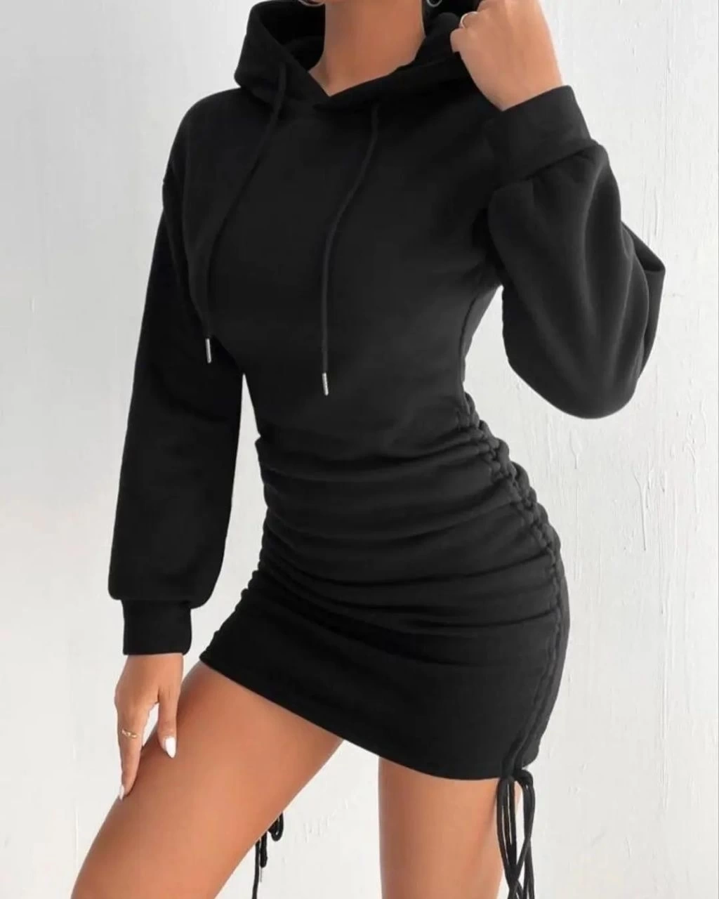 Bu siyah şık elbise, şardonlu ve kompact yapısıyla dikkat çekiyor. Üç iplik detaylarıyla zarif bir görünüm sunan bu elbise, gardırobunuzun vazgeçilmezi olmaya aday. Üst kısmında bulunan kapşonuyla fark yaratan bu elbise, hem şık hem de rahat bir tercih arayan kadınlar için ideal bir seçenek.