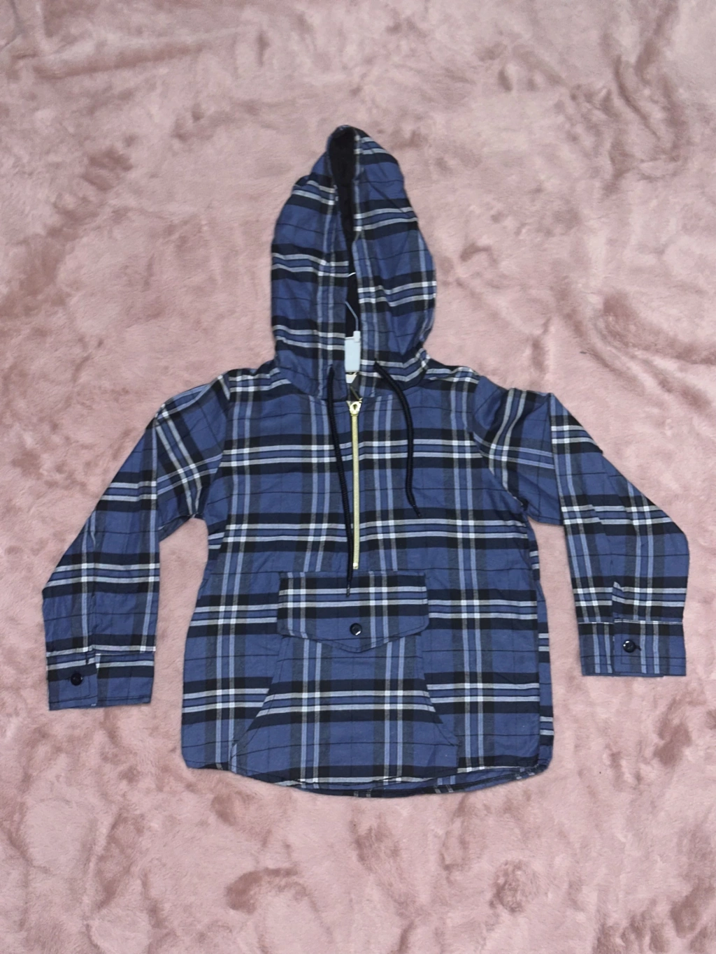 5-10 yaş arası erkek çocuklar için şık ve rahat bir seçenek olan Ekoseli Yarım Fermuarlı Kanguru Cep Kapşonlu Ceket Mavi, küçük beylerin tarzını tamamlıyor.