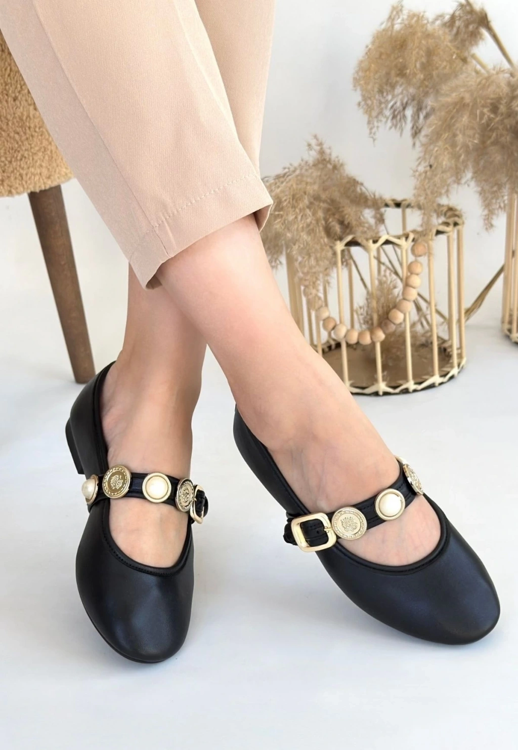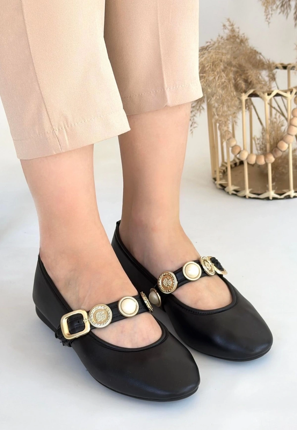 Atnis Siyah Cilt Babet Ayakkabı