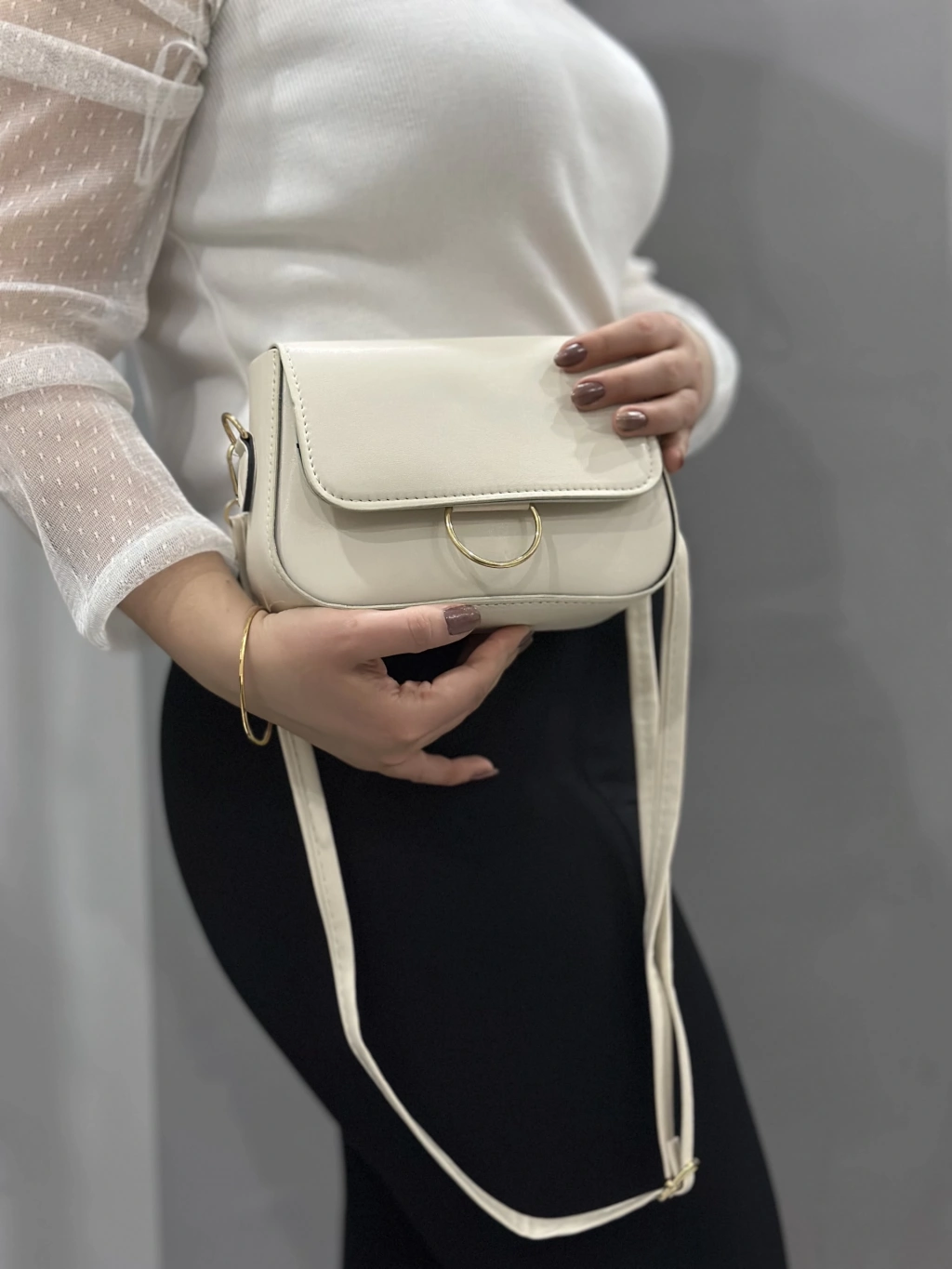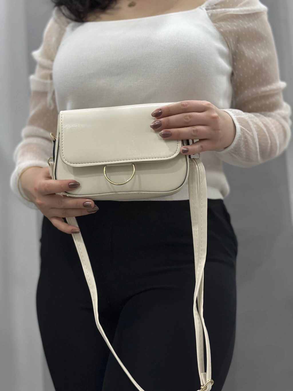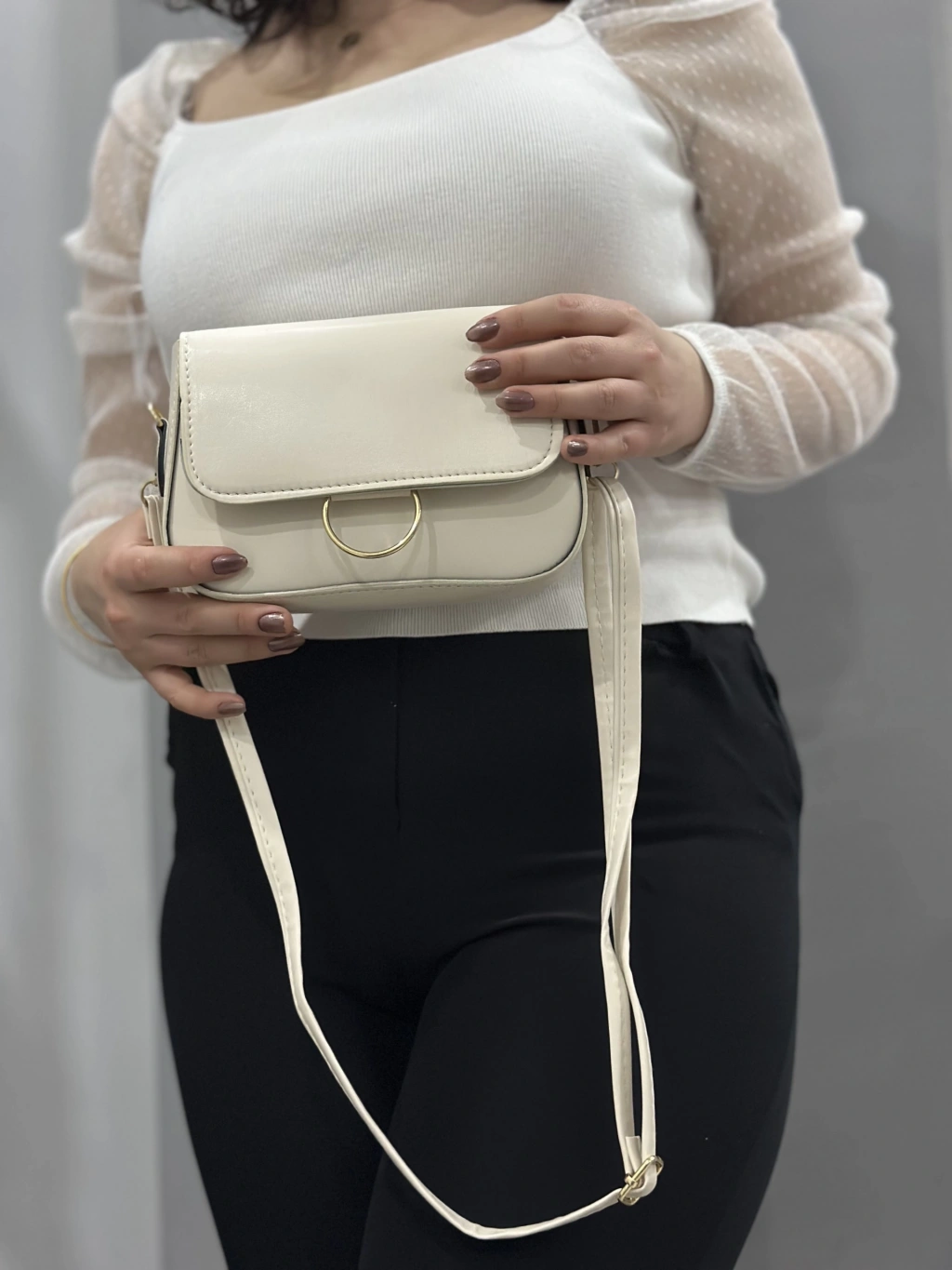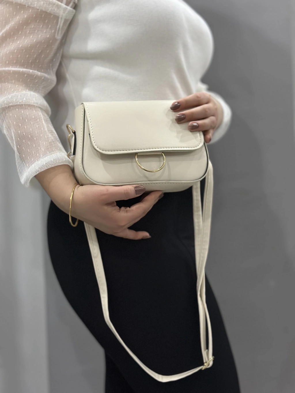 Zerej kemerli krem cilt çanta