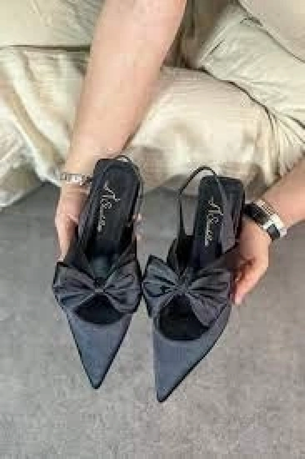 • Cenya Siyah Saten Babet Ayakkabı