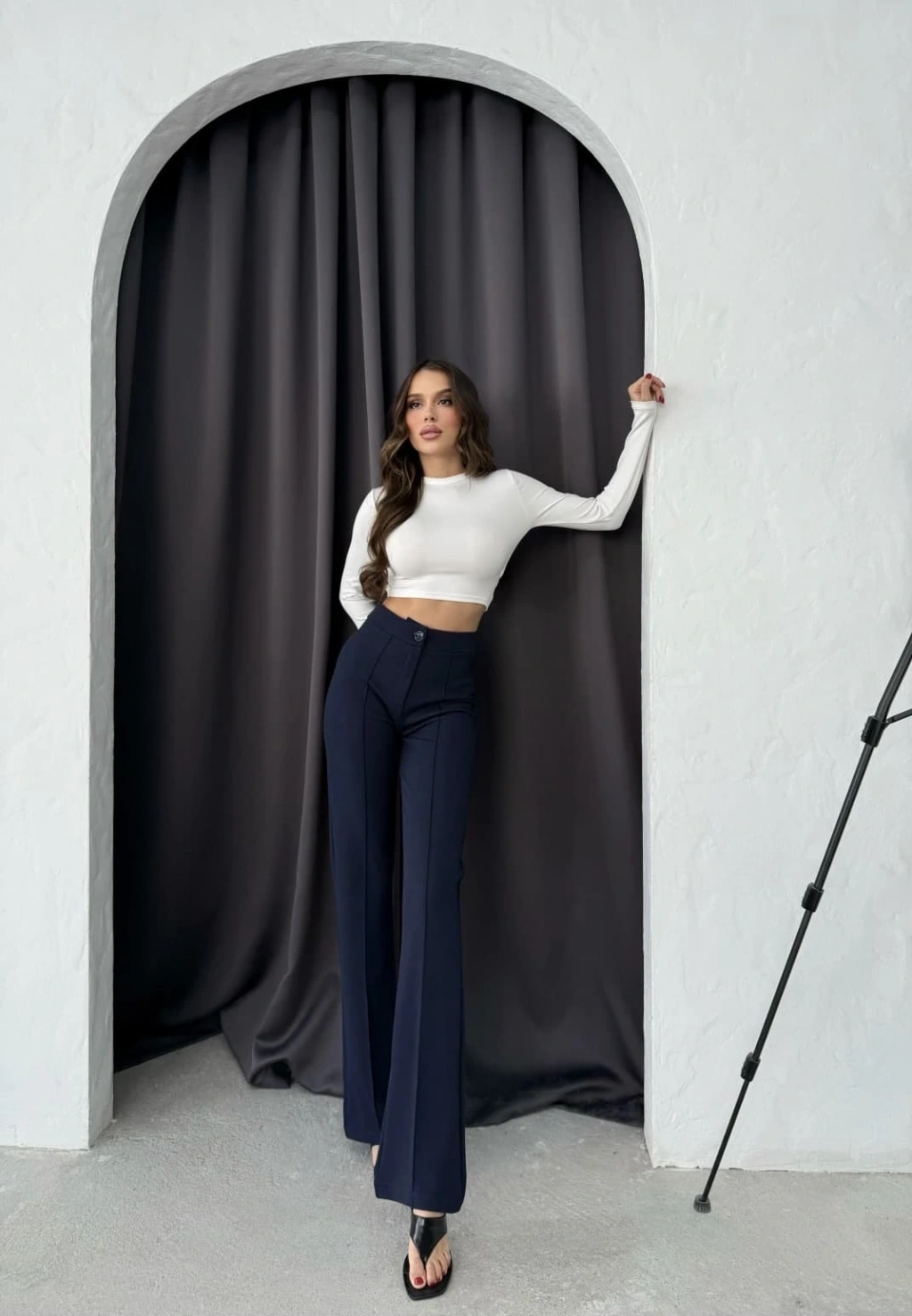 Şıklığı ve rahatlığı bir arada sunan Düğmeli Palazzo pantolon ile tarzınızı konuşturun. Yüksek bel tasarımıyla vücudu saran bu pantolon, zarif lacivert rengiyle her kombinle uyum sağlar. Geniş paçası sayesinde hareket özgürlüğü sunarken, belindeki düğme detaylarıyla da göz alıcı bir görünüm katmaktadır.