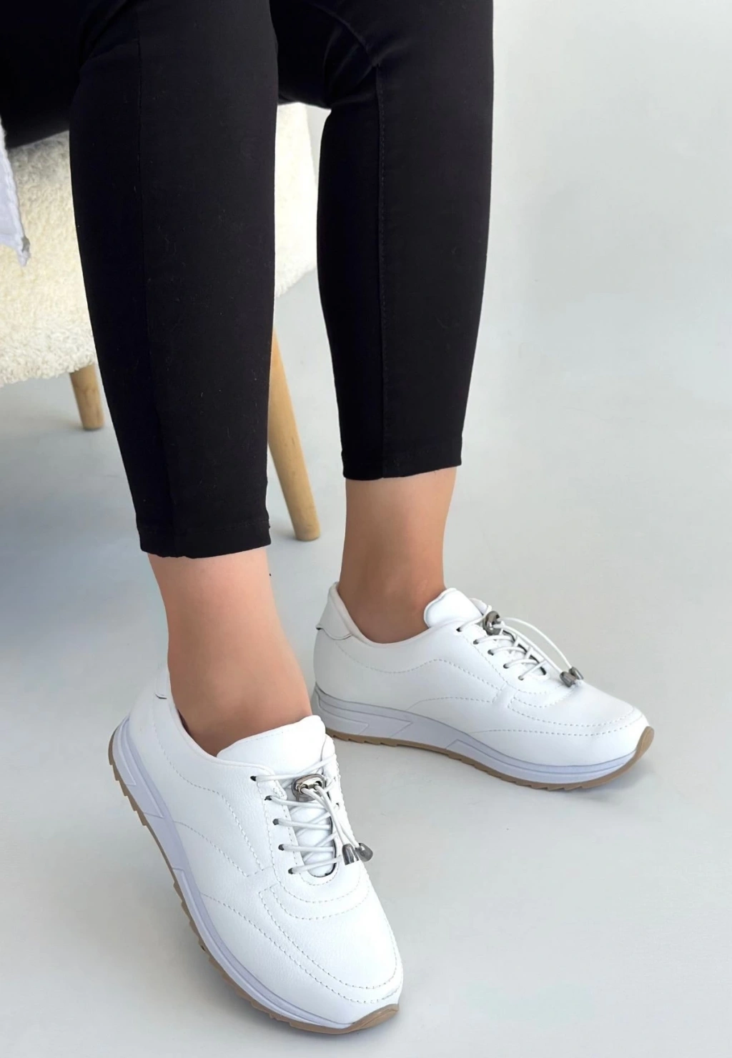 • Finna Beyaz Cilt Bağcıklı Spor Ayakkabı