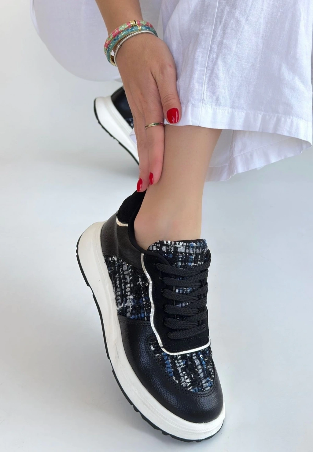 • Hawer Siyah Cilt Bağcıklı Spor Ayakkabı
