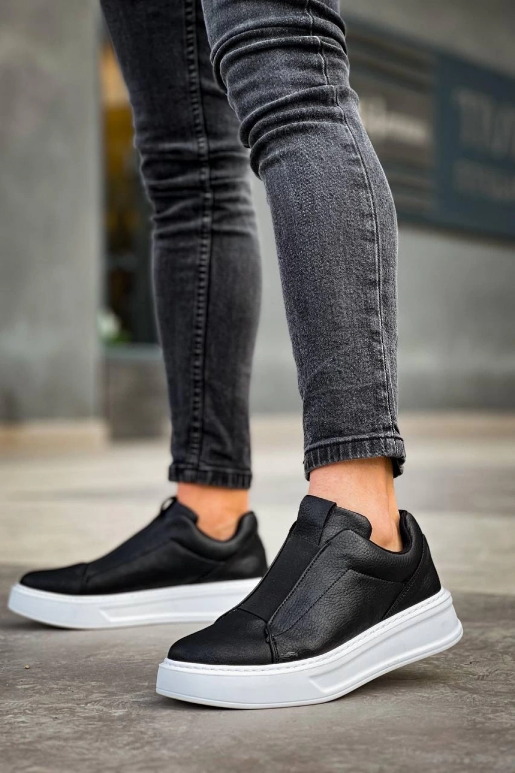 KB-007 Kuback Siyah Beyaz Yüksek Taban Tek Bant Bağcıksız Günlük Erkek Ayakkabı