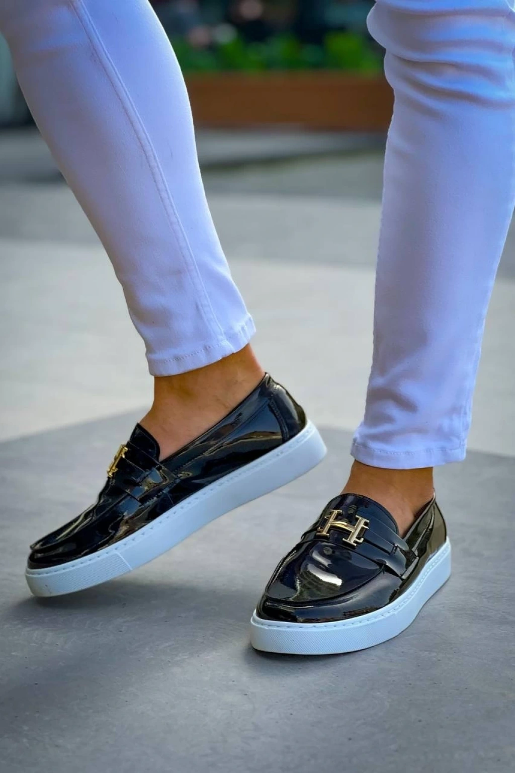• KB-027 Kuback Bağcıksız Siyah Rugan H Günlük Erkek Ayakkabı