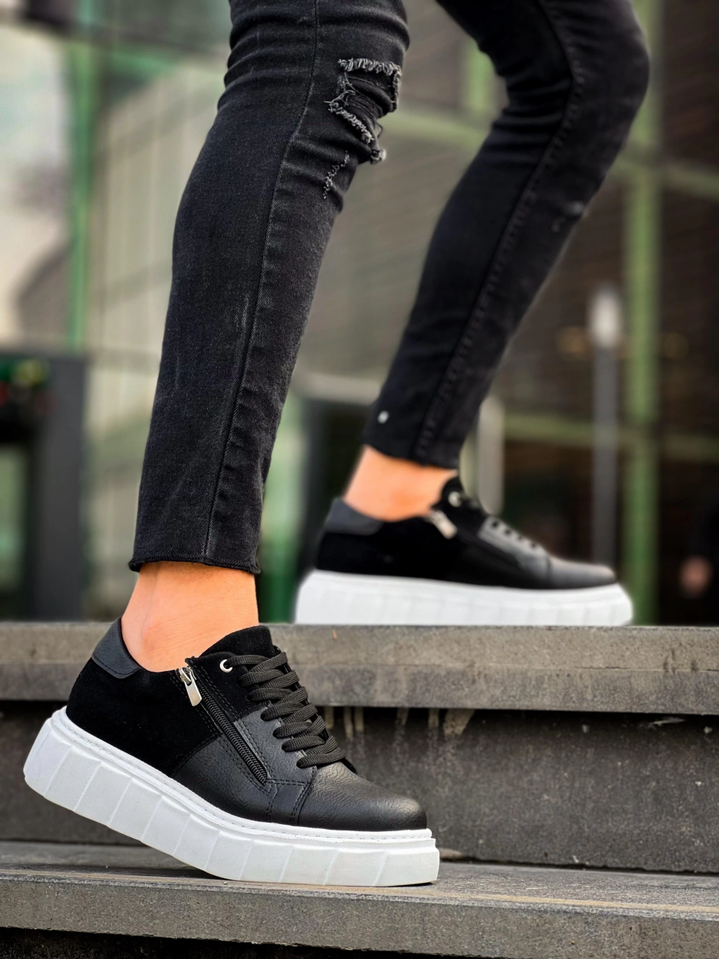 • KB-X155 Kuback Siyah Cilt Siyah Süet Detaylı Beyaz Yüksek Taban Günlük Spor Ayakkabı