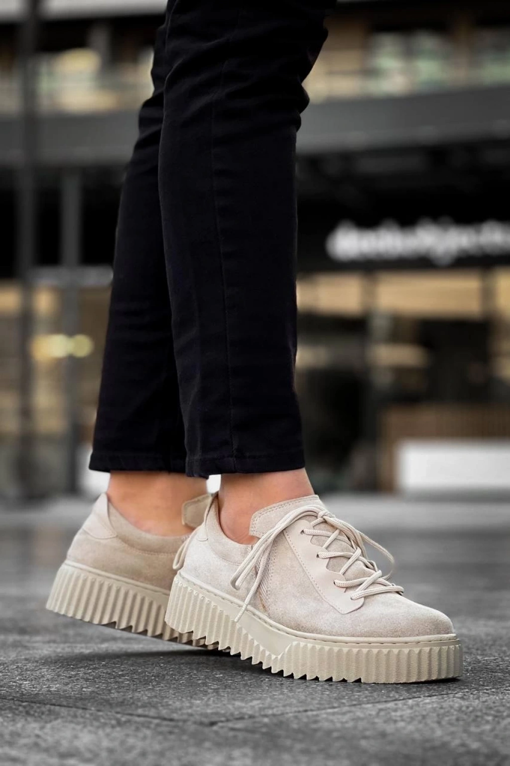 • KB-X502 Kuback Bej Süet Yüksek Bej Taban Bağcık Detaylı Lastikli Günlük Erkek Ayakkabı