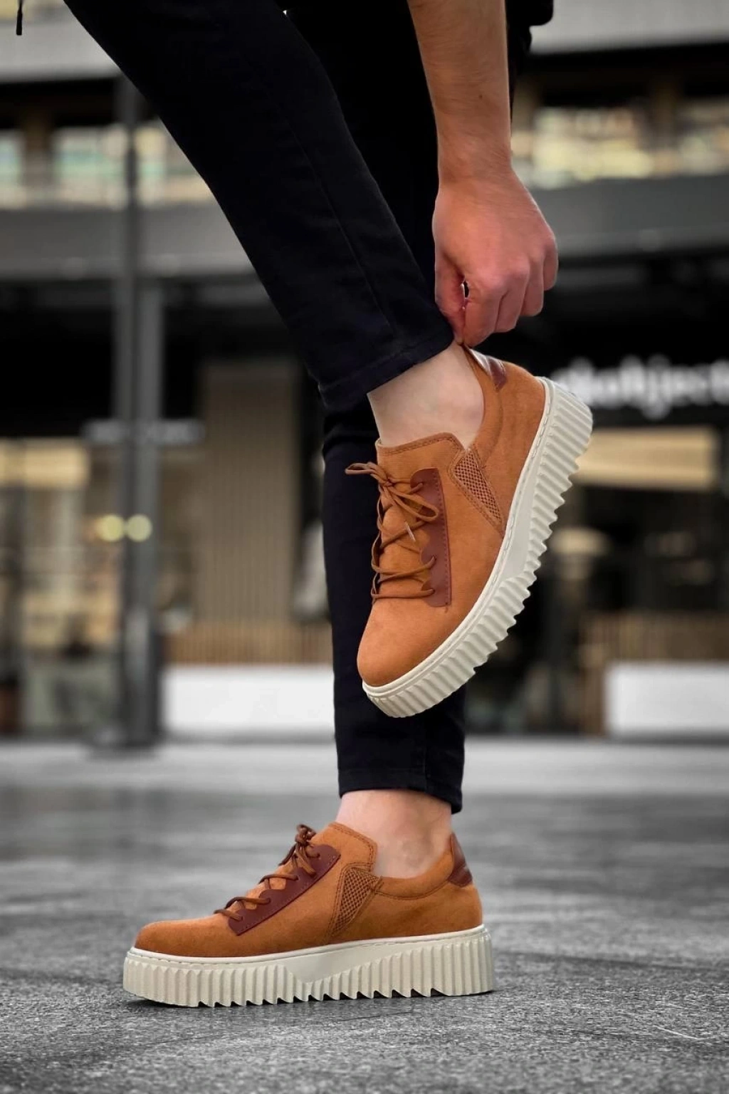 KB-X502 Kuback Taba Süet Yüksek Bej Taban Bağcık Detaylı Lastikli Günlük Erkek Ayakkabı