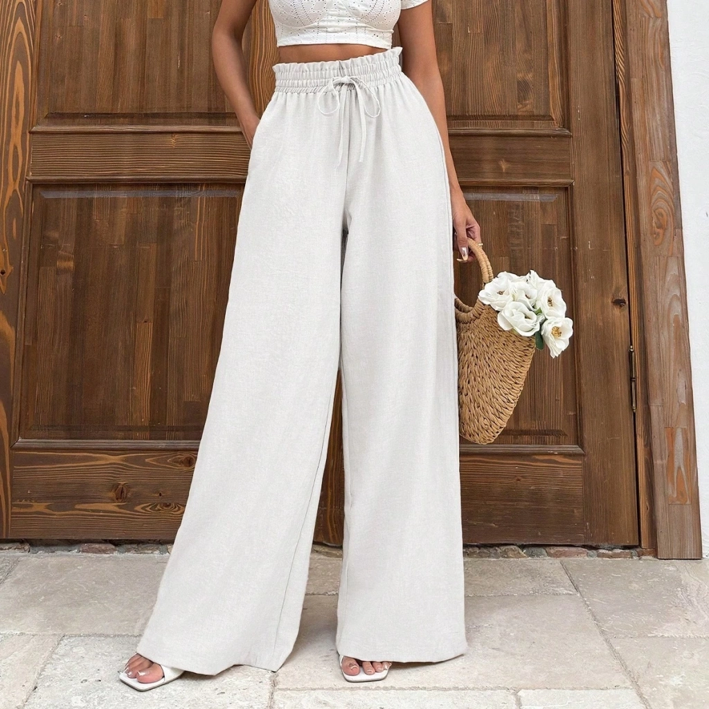 Bu şık keten bağcıklı beyaz pantolonla tarzınızı tamamlayın. Hem şık hem de rahat kesimi ile günlük kullanıma uygun olan bu pantolon, yaz aylarında gardırobunuzun vazgeçilmezi olacak.