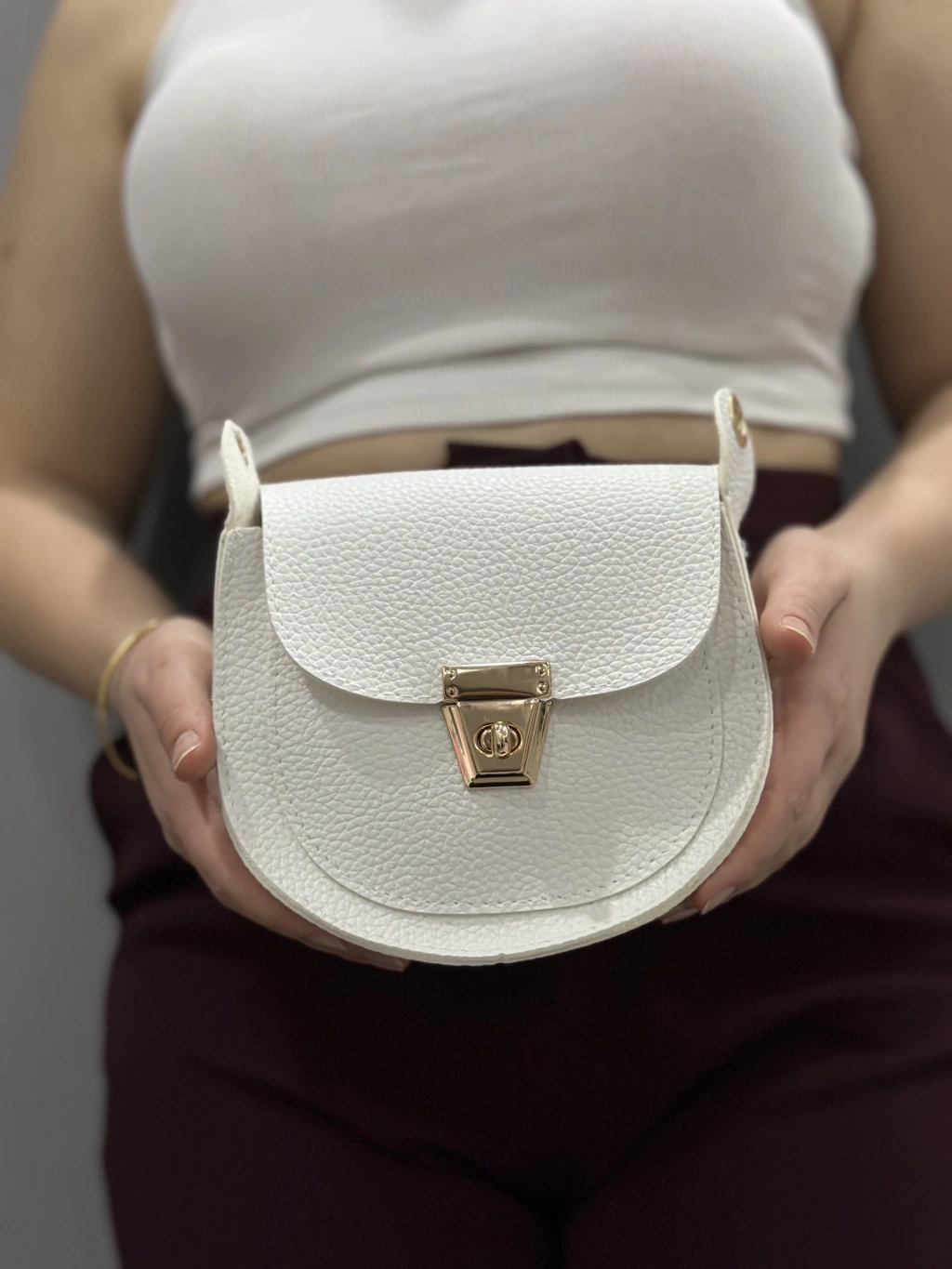 Bu beyaz cilt çanta ile günlük ya da özel günlerde şıklığınızı tamamlayabilir, her tarza uyum sağlayabilirsiniz.