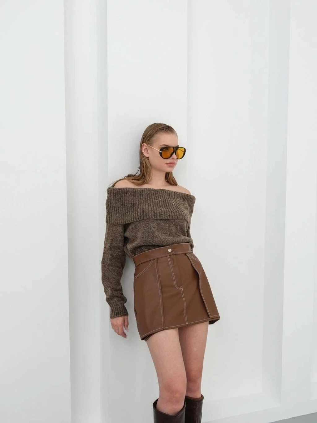 Şıklığı ve rahatlığı bir arada sunan Kontrast deri etek, gardırobunuzun vazgeçilmez parçası olmaya aday!