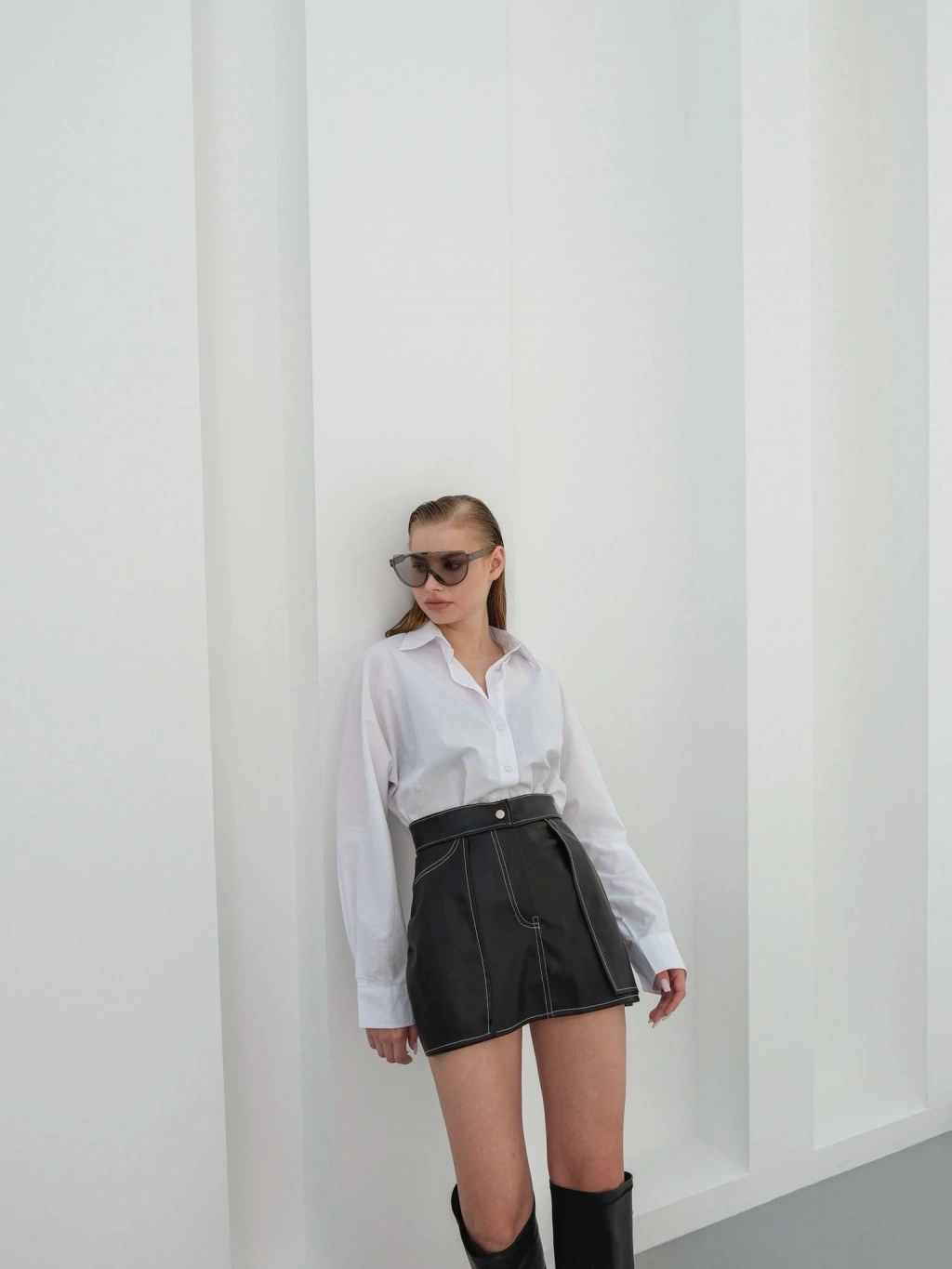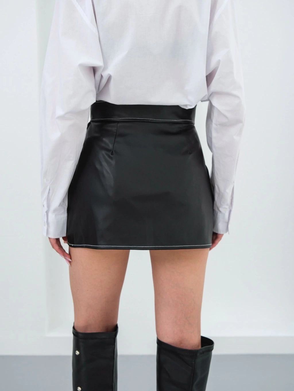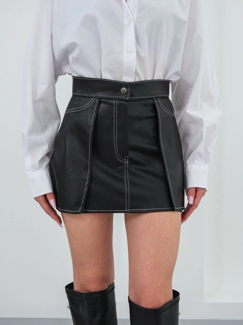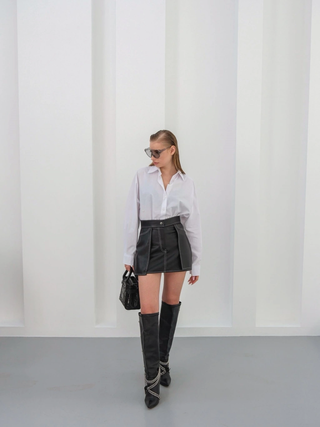 Şıklığı ve tarzı bir arada sunan Kontrast Deri Etek ile farkınızı ortaya koyun. Siyah rengiyle her kombinde rahatlıkla kullanabileceğiniz bu etek, şık görünümüyle göz dolduruyor.