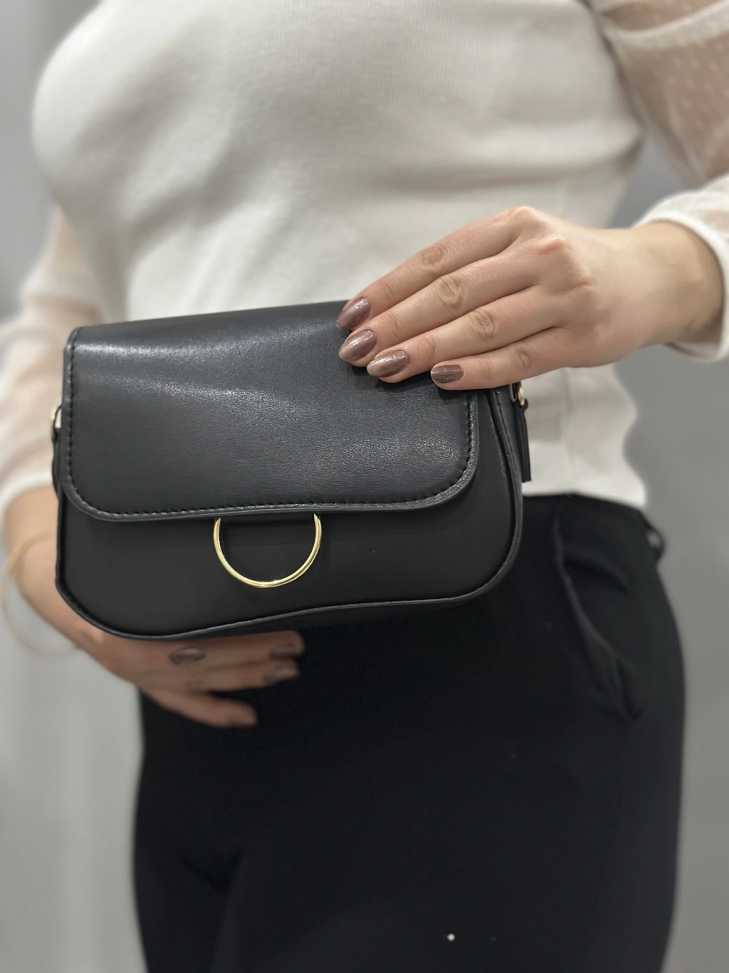 Klasik kapaklı siyah cilt çanta