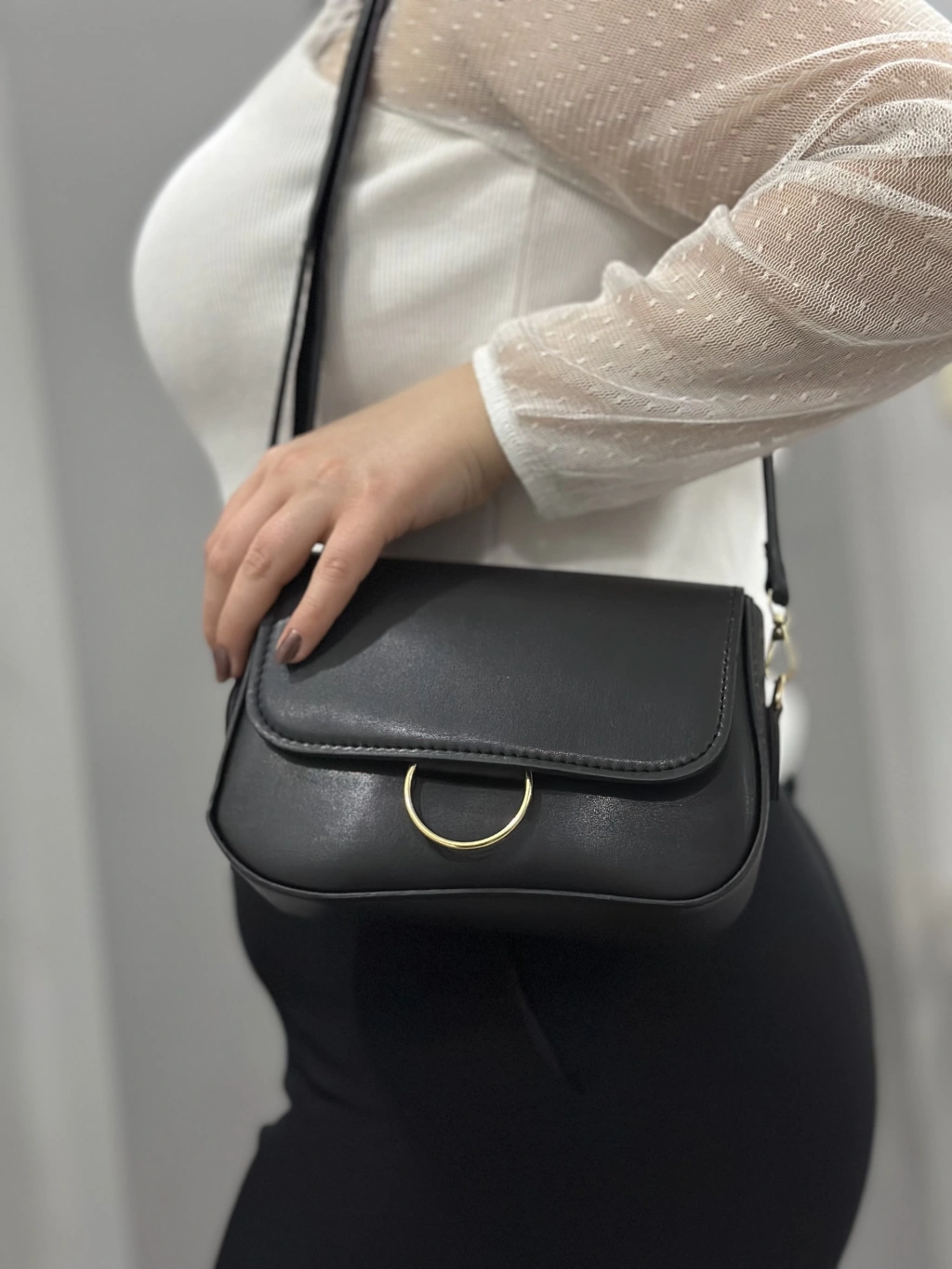 Siyah cilt mossi çanta