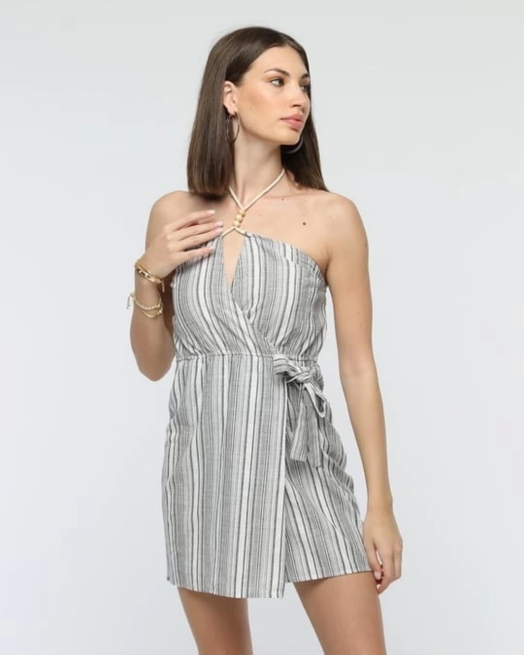 Şıklığı ve rahatlığı bir arada sunan Kuşaklı Çizgili Mini Keten Elbise, gardırobunuzun vazgeçilmez parçalarından biri olmaya aday!