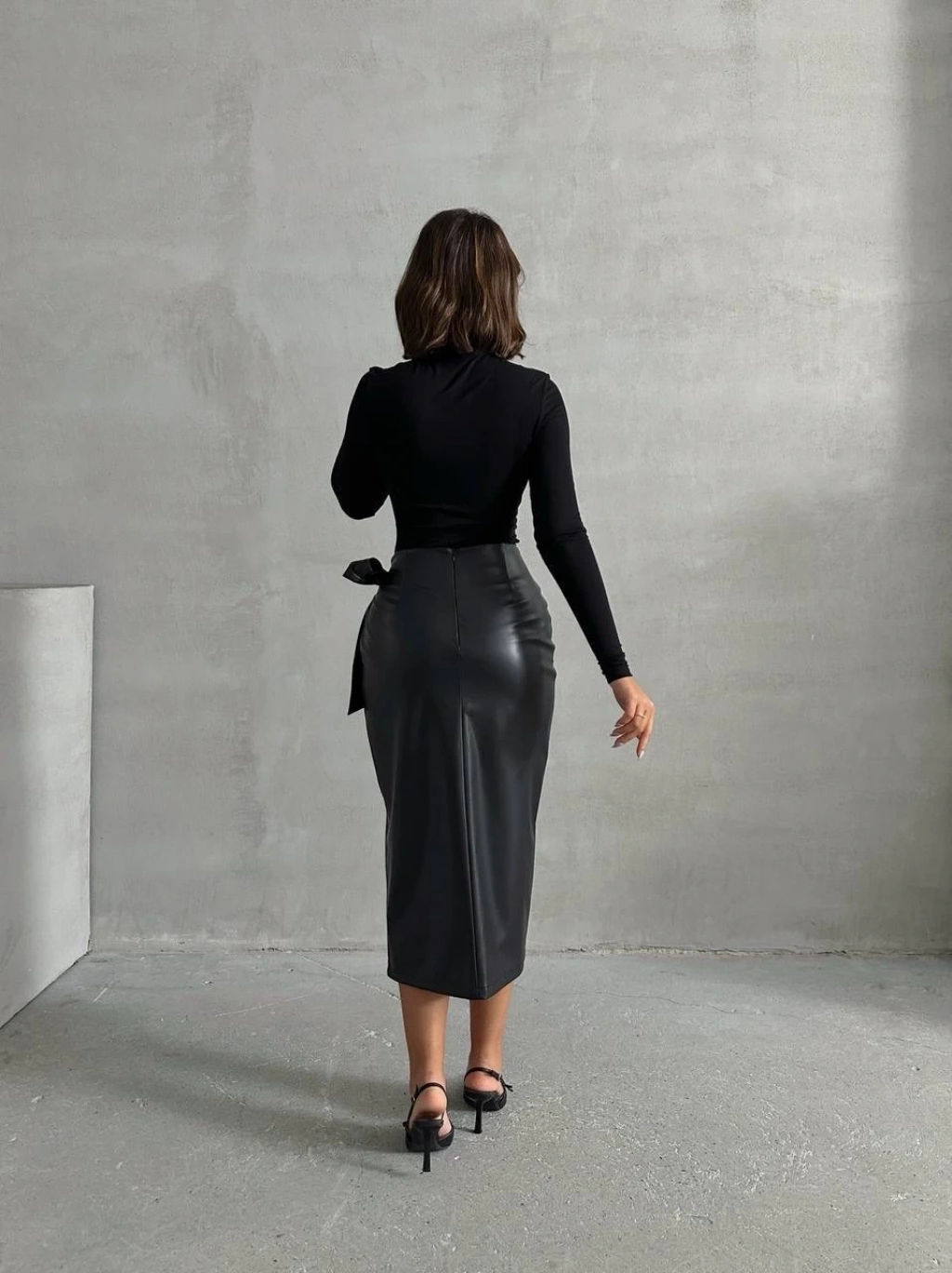 Şıklık ve zarafetin buluştuğu Kuşaklı Uzun Deri Etek, gardırobunuzun vazgeçilmezi olmaya aday. Hem günlük hayatta hem de özel davetlerde şıklığınızı tamamlayacak şık bir seçenektir.