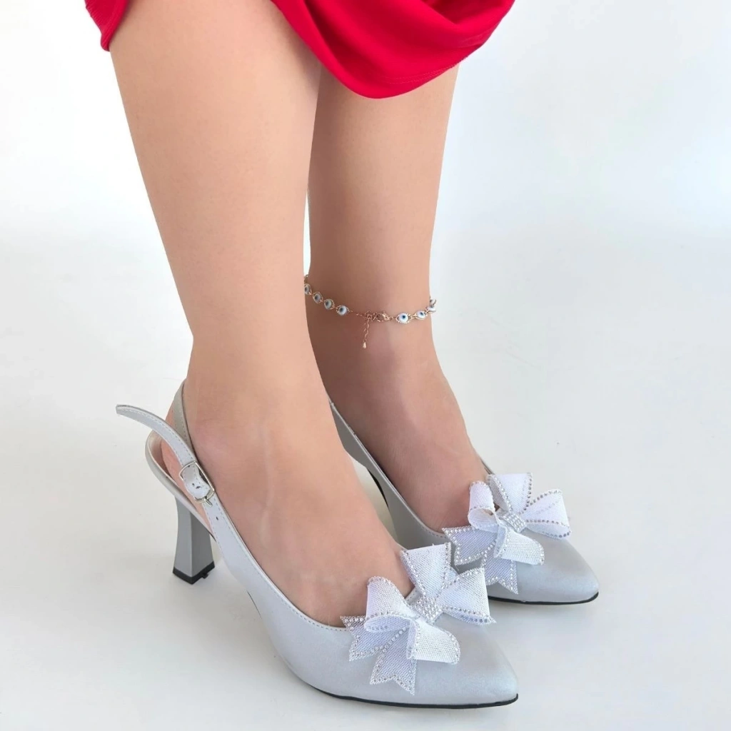 Mewi Gümüş Saten Topuklu Ayakkabı