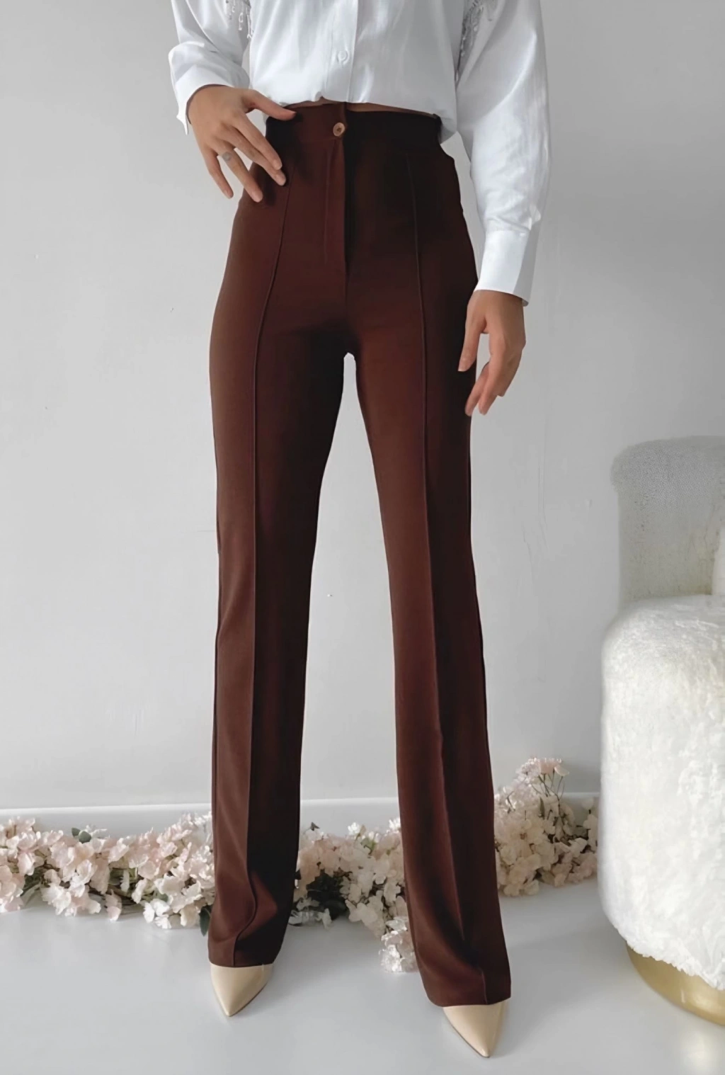 Önü Cumalı İthal Krep Pantolon, şıklığı ve rahatlığı bir arada sunar. Hem günlük hayatta hem de özel davetlerde rahatlıkla tercih edebileceğiniz bu pantolon, gardırobunuzun vazgeçilmez parçası olmaya aday.
