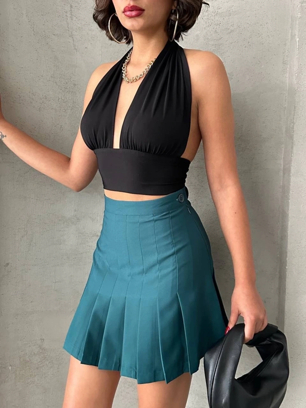Çok şık ve trend bir görünüm elde etmenizi sağlayacak olan Yeşil Pileli Düğmeli Etek, gardırobunuzun vazgeçilmez parçalarından biri olmaya aday! Hem şık hem de rahat kesimi ile günlük hayatta veya özel davetlerde tercih edebileceğiniz bu etek, tarzınızı yansıtmanızı sağlayacak.