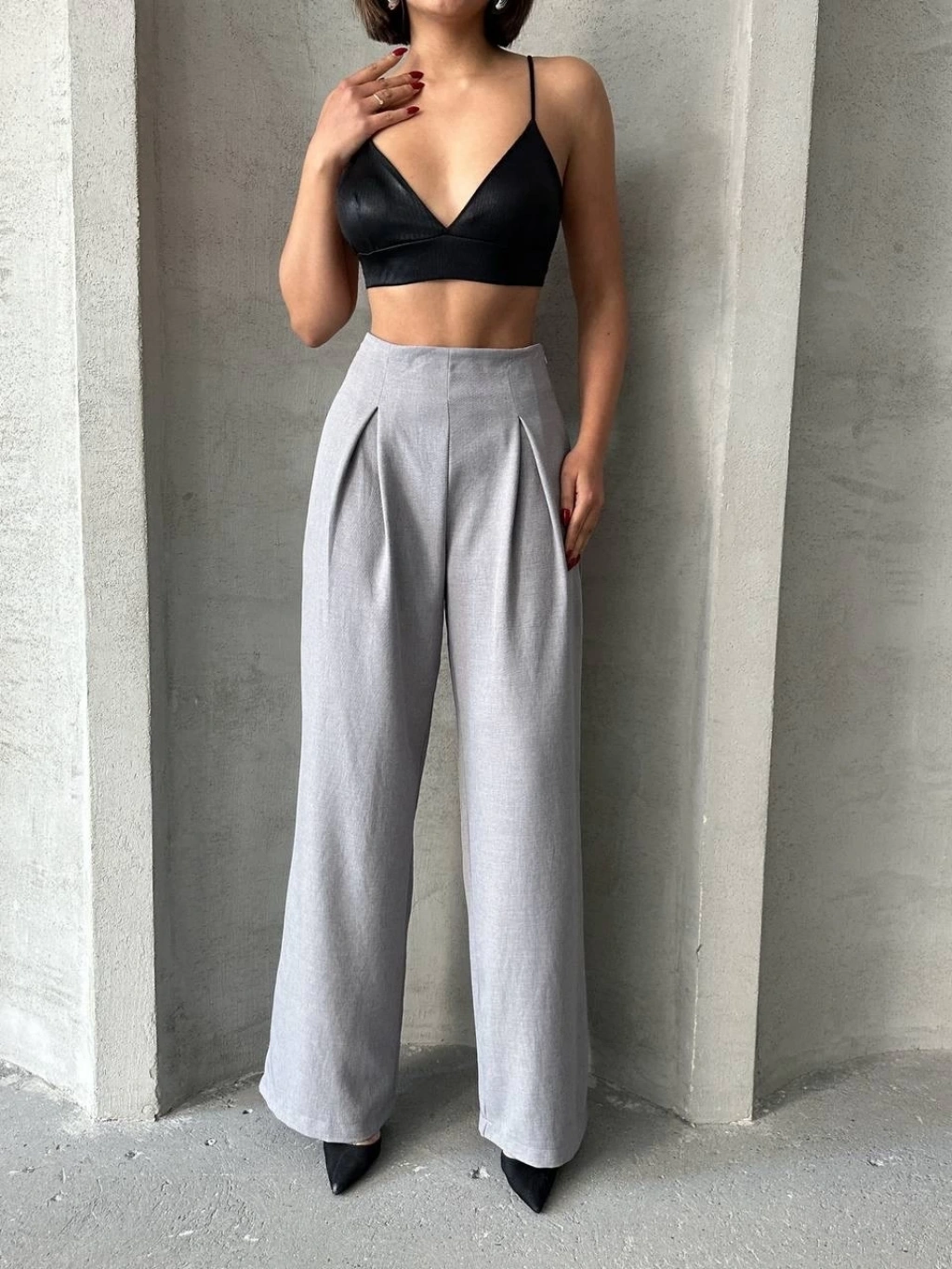 Pileli keten pantolon, yaz aylarında şıklık ve rahatlık arayan kadınların tercihi olacak