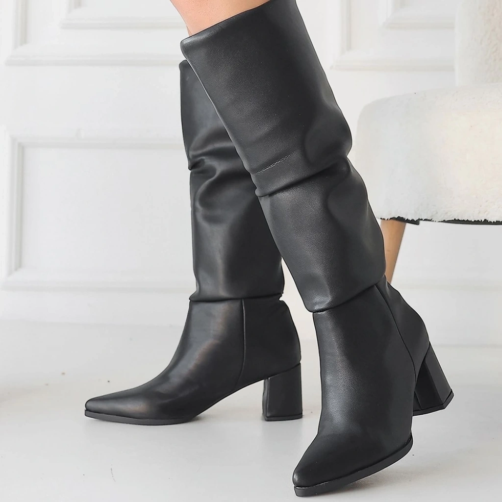 Detay: Topuklu Diz Altı Körüklü Çizme
