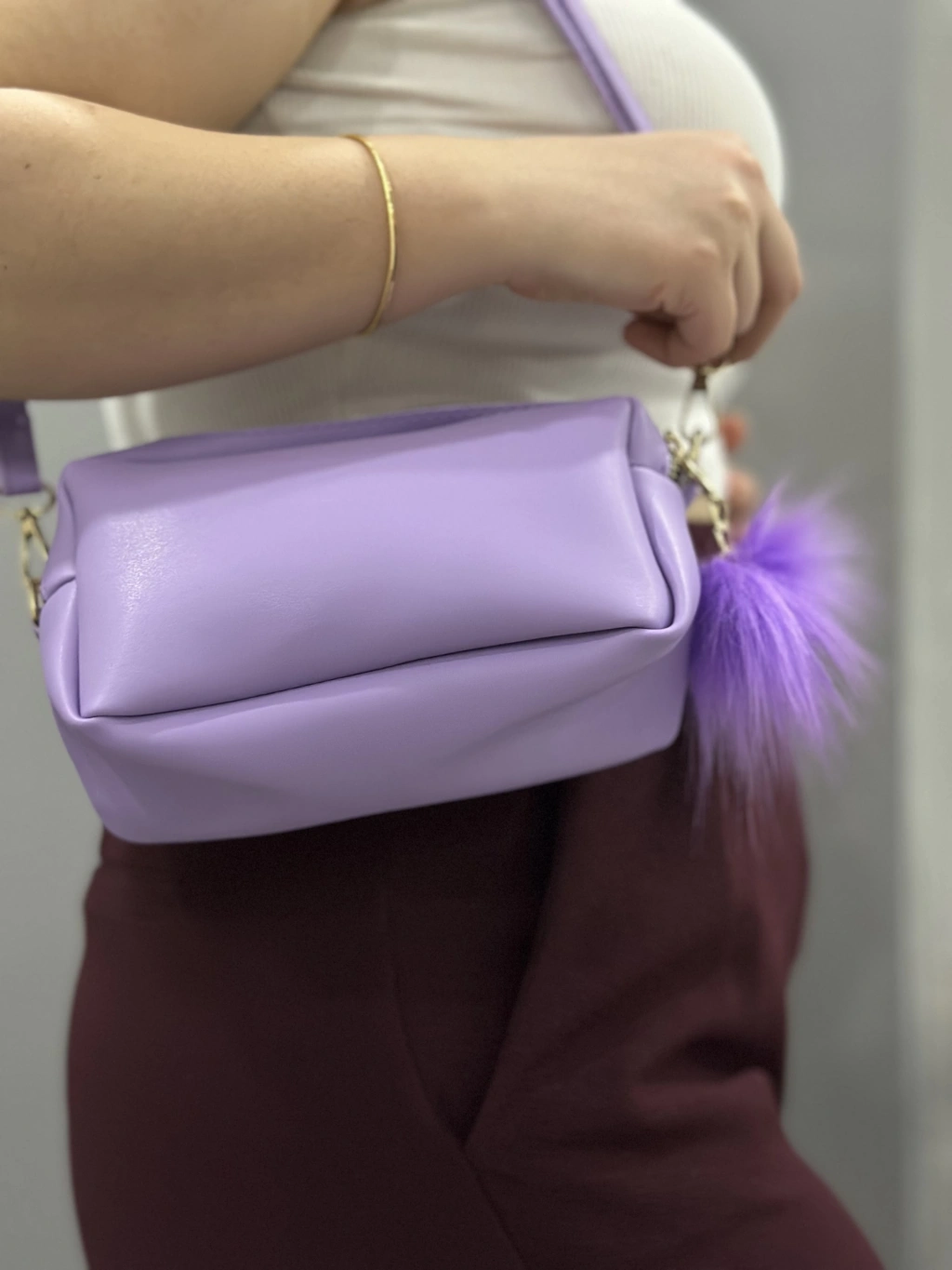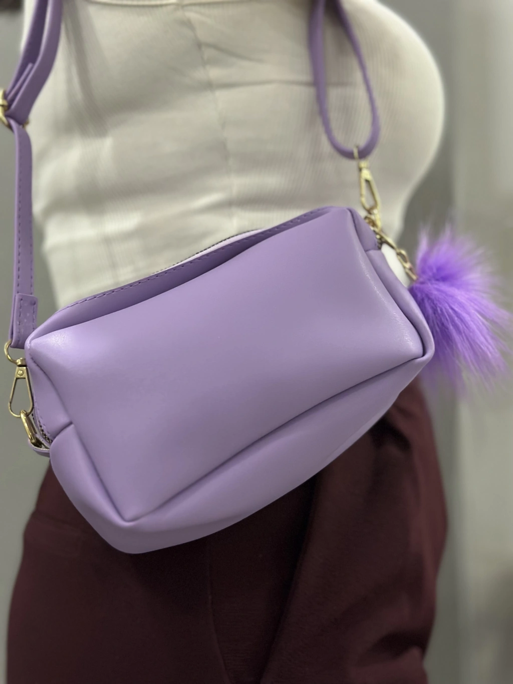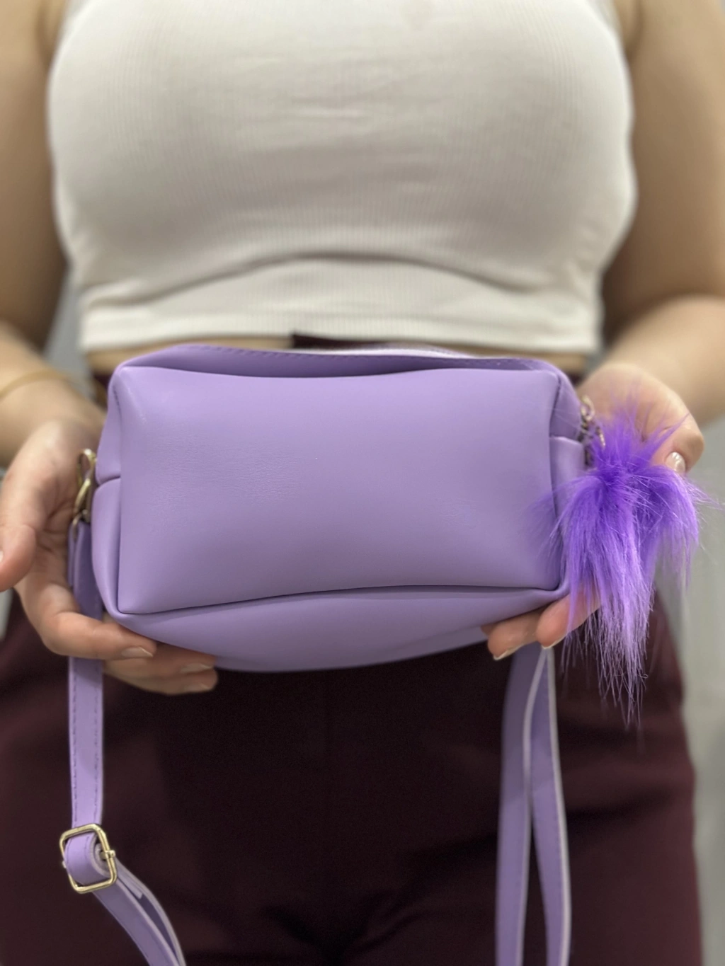Şıklığı ve kullanışlılığı bir arada sunan Ponpon Mor Cilt Çanta, tarzınızı tamamlayacak harika bir seçenek.
