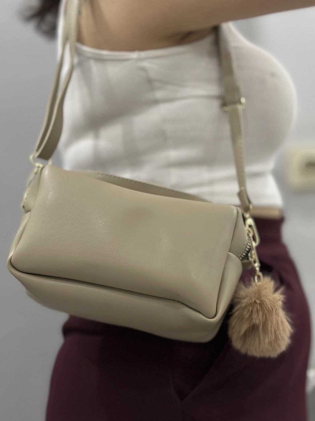 Modaya uygun ve kullanışlı Ponpon Vizon Cilt Çanta ile şıklığınızı tamamlayın!