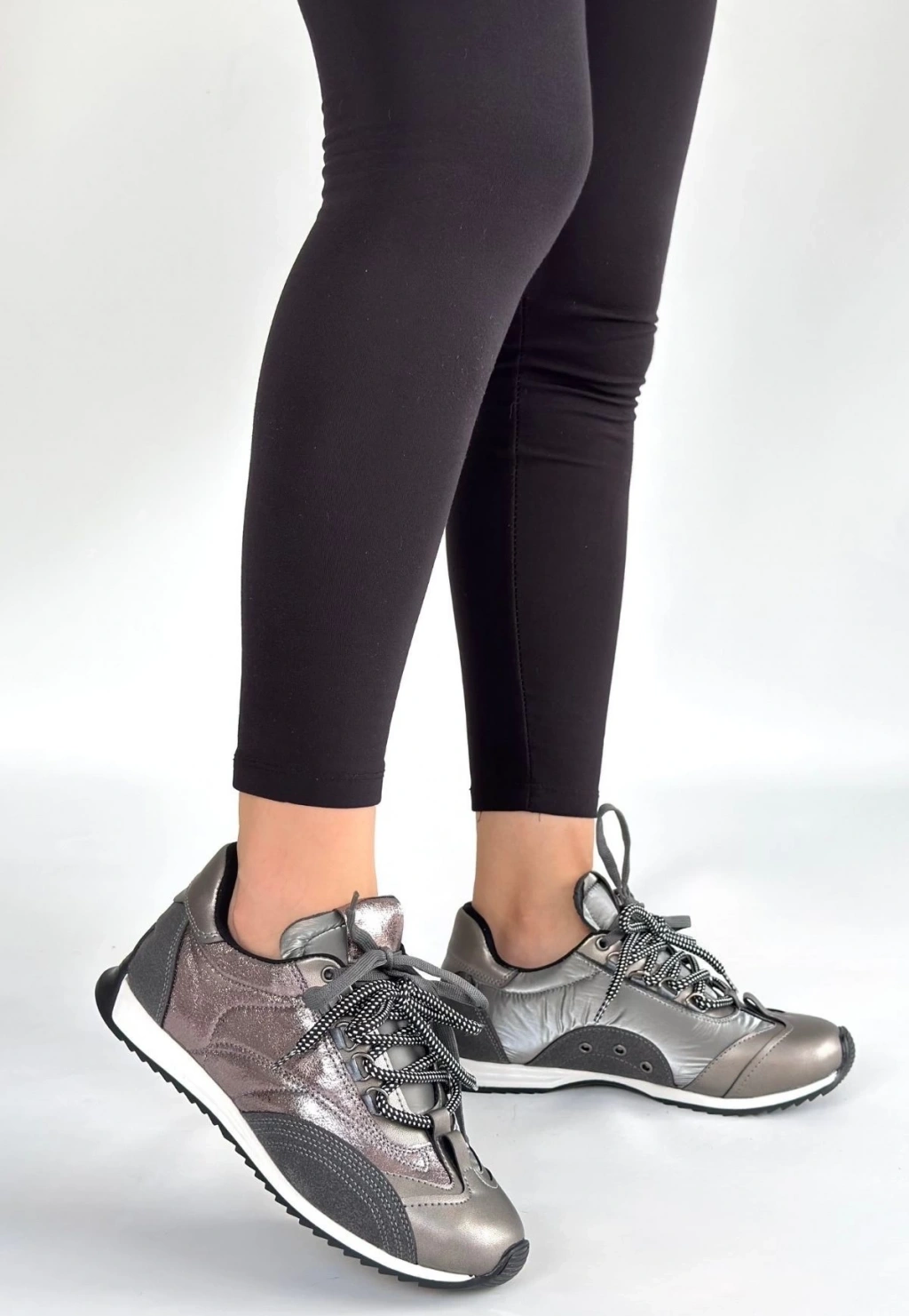 • Ranu Platin Cilt Paraşüt Detaylı Bağcıklı Spor Ayakkabı
