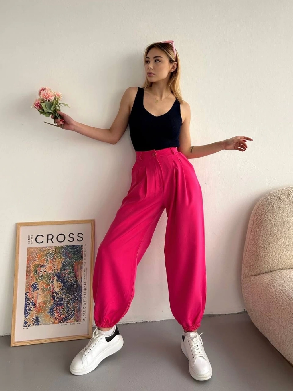 - Fuşya rengi ile dikkat çeken pantolon, kombinlerinize enerjik bir hava katacaktır.