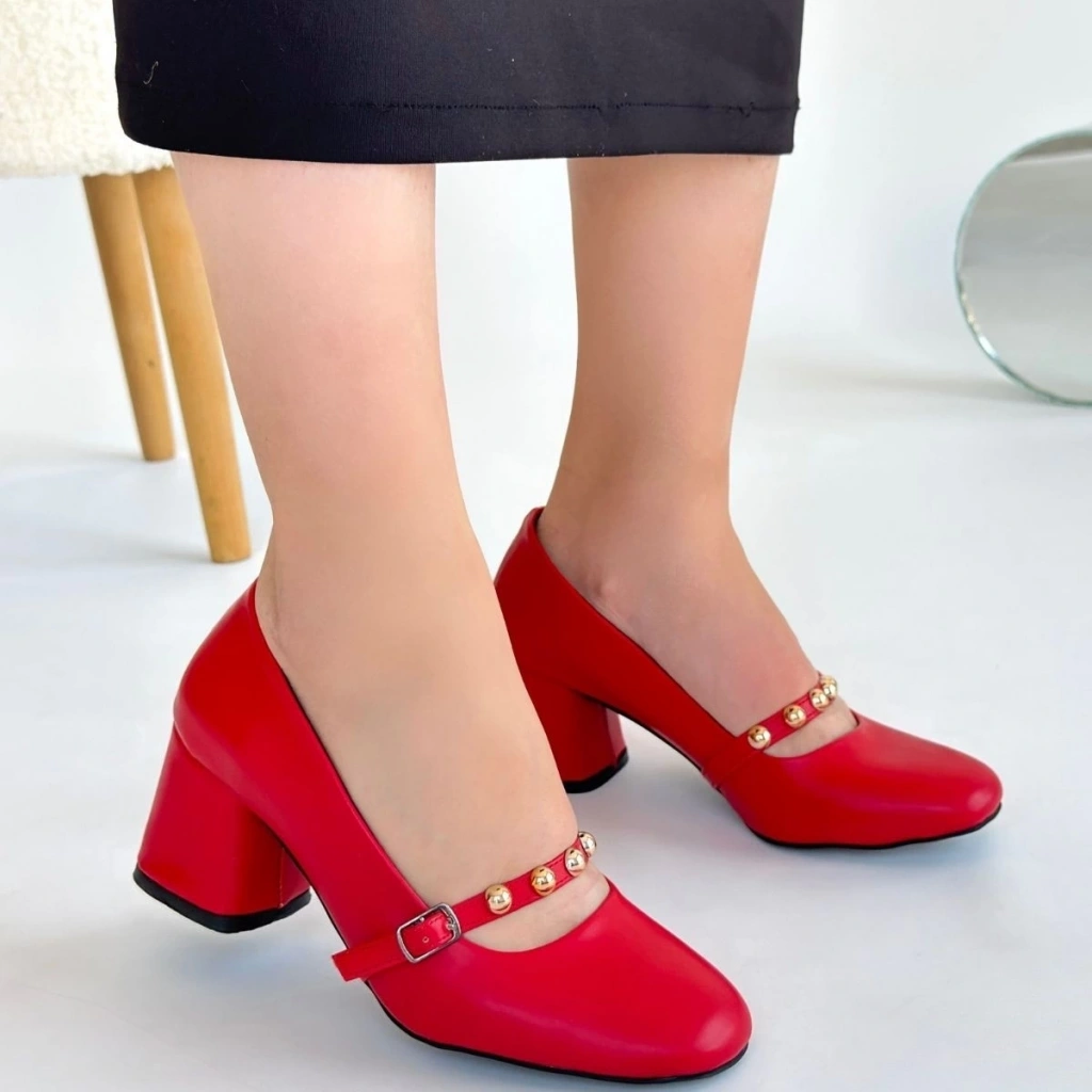 • Tino Kırmızı Cilt Topuklu Ayakkabı
