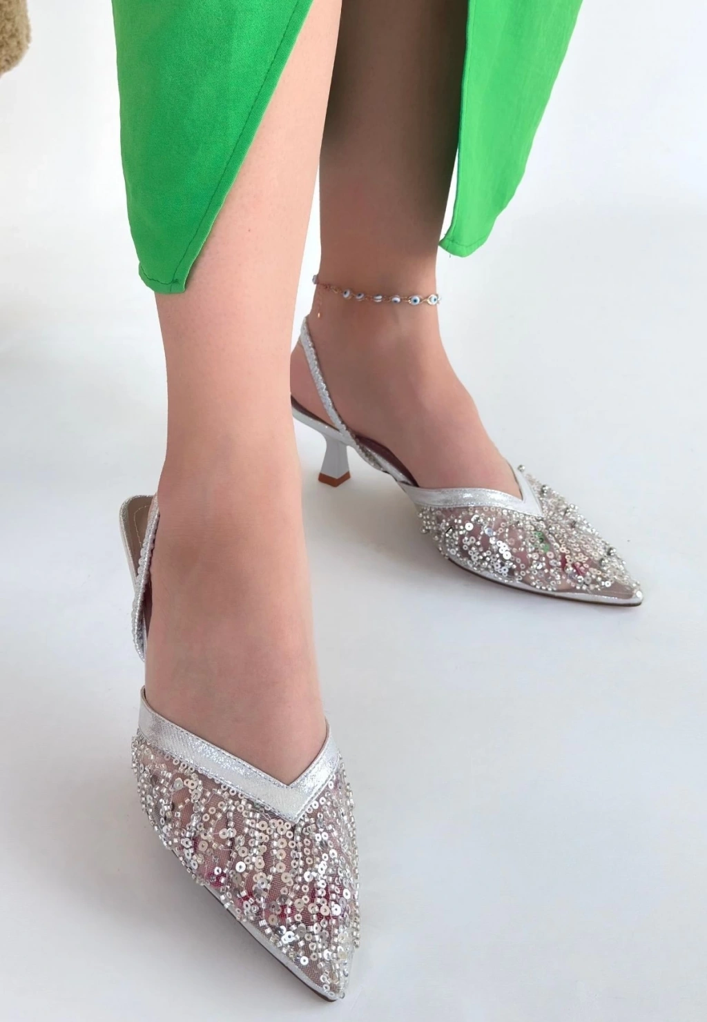 • Toyi Gümüş Saten Topuklu Ayakkabı