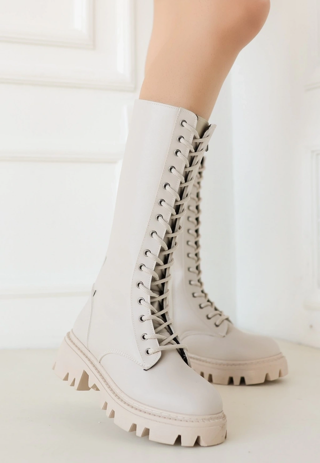 Detay: Topuklu Yandan Fermuarlı Diz Altı Çizme