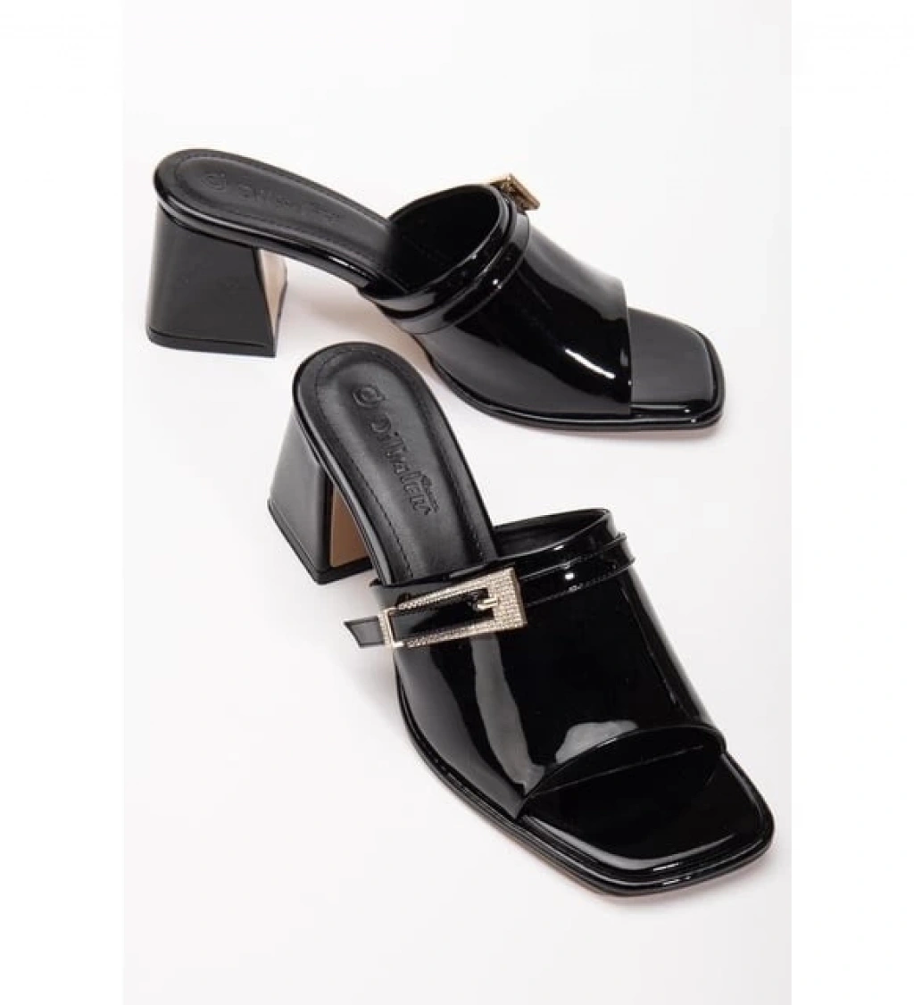 Ziva Siyah Rugan Topuklu Terlik